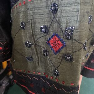 This relaxed-fit jacket is fully lined with soft rayon and fastens with ornate decorative buttons. Perfect for layering, travel, evening events, or adding a unique bohemian element to any outfit.
