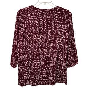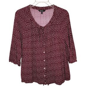 Ulla Popken Womens Plus 16/18 V Neck 3/4 Sleeve Print Top Blouse Button Front