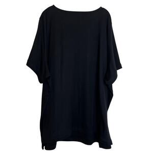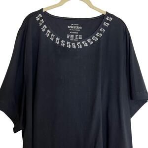 Ulla Popken Womens Top 28/30 Black Rhinestone Scoop Neck Pima Cotton Oversized