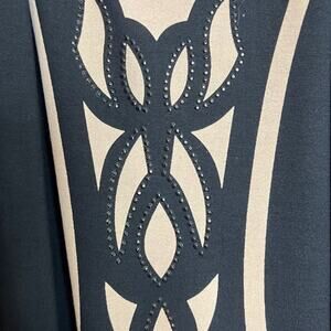Ulla Popken Women's Tunic Top 20/22 Black Beige Geometric Studded 3/4 Sleeve Viscose Blend