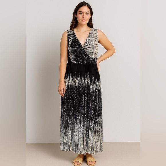 Ulla Popken midi dress in navy and cream tiny floral print. V neck crossover bodice and sleeveless. Super soft viscose elastane blend. Stretch knit. Bust 25” waist 21” length 59”. Excellent condition. Size 20