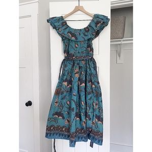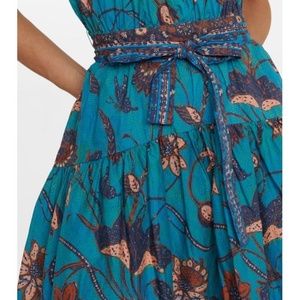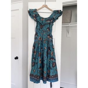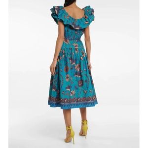 Ulla Johnson Amira Blue Floral Midi Dress with Ruffle Sleeves in Lagoon - Size 4