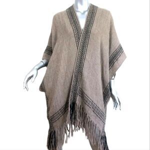 Ulla Johnson Handmade Alpaca Gray Tan and Black Poncho OS