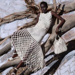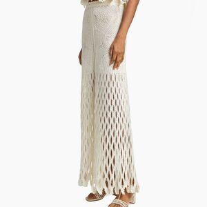Elevate your resort or summer wardrobe with this Ulla Johnson Kalista Skirt. This stunning ivory crochet maxi skirt features intricate open-knit patterns and scalloped hemline. The fitted waist transitions into a dramatic, flowing silhouette with a peek-a-boo effect that’s both bold and elegant.