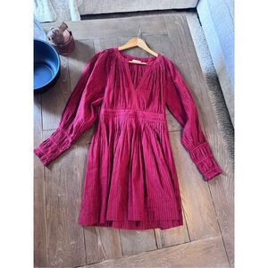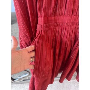 Ulla Johnson Rory Metallic Cotton Long Sleeve Mini Dress Ruby Red Size 4
