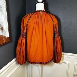 Ulla Johnson Camden Blouse in mustard yellow (looks more orange in the photos but it’s mustard yellow) with navy blue embroidery