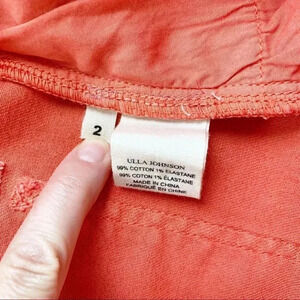 Kase Stretch denim shorts from Ulla Johnson. Size 2. Excellent, condition- worn once. I have these in blue and just wear them more than the coral. Fits more like size 4 or 27 jeans. Soft, flattering, comfortable.
