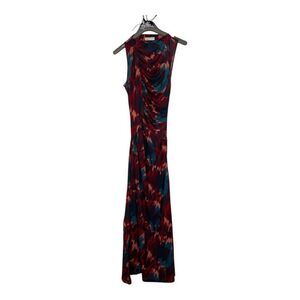Red Abstract (100% Lyocel). Casual Dresses. Boat Neck.
