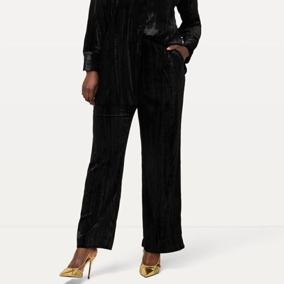Ulla Popkin Women's Black Velvet Elastic Waist Slim Fit Pants Size 16/18