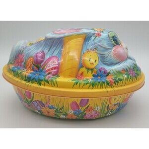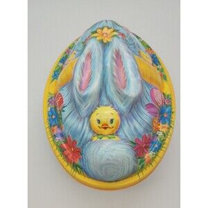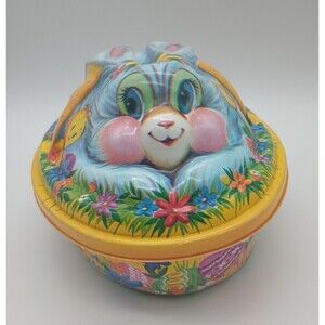 This Ullman Co Easter Bunny Rabbit Candy Container is a vintage collectible made in the United States during the 1970s. The multicolor plastic container features a 3D Easter basket lid design and is perfect for Easter occasions. The container is not personalized and is not handmade. It is a great addition to any holiday and seasonal collection and is sure to bring back memories of childhood Easter egg hunts.