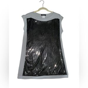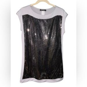 Ulna Rose Sleeveless Sequins Top/Blouse. Gray/Black. Size Large