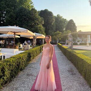 This is the Miss Rosier Pink Tulle Maxi Dress, link for reference: https://miss-rosier.com/products/ulrique-black-gliter-ruched-mesh-maxi-dress?syclid=c5a76620-d68a-4361-ac2c-b29253dac862&utm_campaign=order-confirmation-email&utm_content=product&utm_medium=email&utm_source=OrderlyEmails