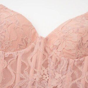 Ulrique Pink Lace Corset Tulle Maxi Dress - Size Small