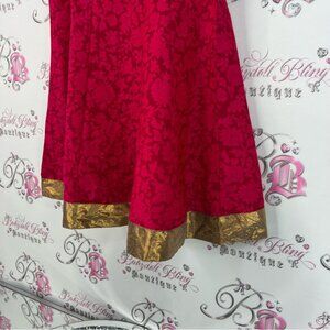 Charming red dress with gold details. Perfect for formal events. Sleeveless design for comfort. Size 7/8.
