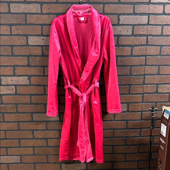 Soft fuchsia robe with a cozy feel. Includes a tie belt and long sleeves. Overall length is 40.5 inches. Size s/m