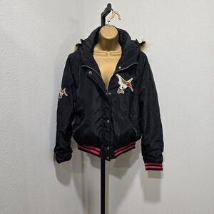 Ultim 8 Bomber Jacket Jrs XL Faux Fur Hummingbird Hoodie Outdoor Embroidered
