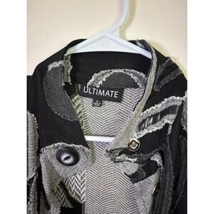 Ultimate Cardigan Sweater Womens Small Black Abstract Patchwork Lagenlook Artsy