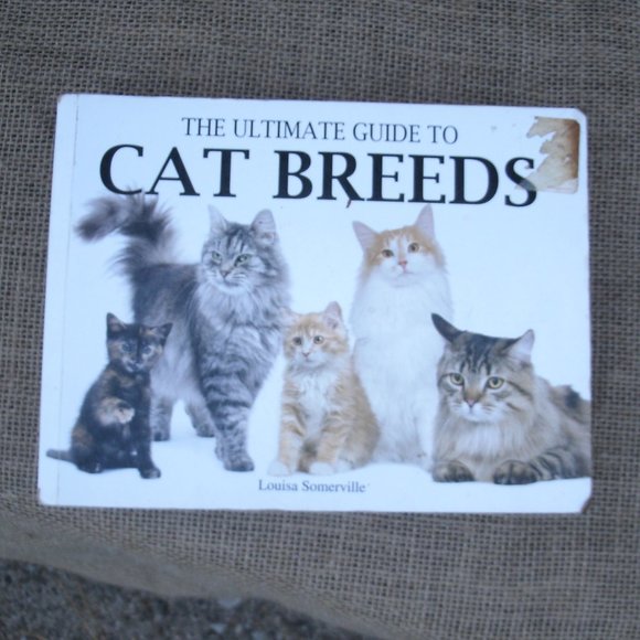 The Ultimate Guide to Cat Breeds by Louisa Somerville. Paperback. Publisher: Chartwell Books Inc, 2014. ISBN# 9780785822646. Lots of color photos. Good condition, no torn pages. Not written in. It does have some dirt on page edges, mainly the short side at corners. There's a little along the long sides toward front cover. Great for anyone who loves cats.