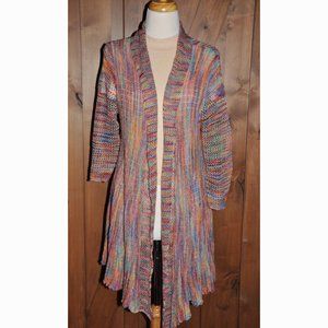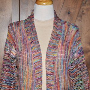 Ultimate Knit Asymmetrical Multi-Colored Pinks & Blues Long Sleeve Plush Sweater