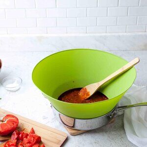 SPILLOVER STOPPER: Perfect for preventing spillovers when sautéing lots of veggies and greens in overfull pan.
