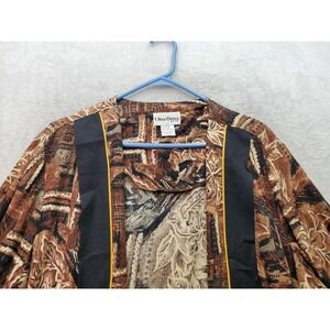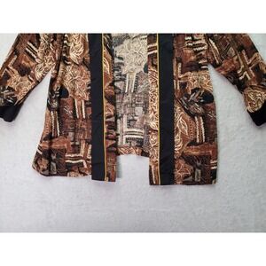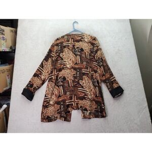 Ultra Dress Cardigan Women's Size 14W Brown Floral Rayon Long Sleeve Open Front