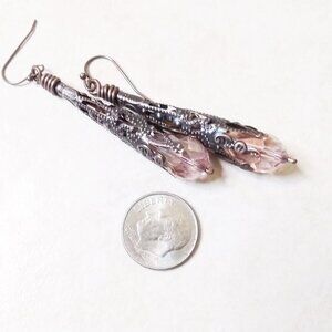 Just @ 2.25" long, this pair of danglers is of good sized length, but not heavy at all. Copper Coated, Hypoallergenic Earhooks.
