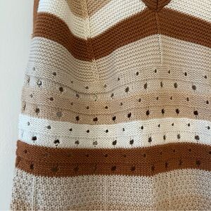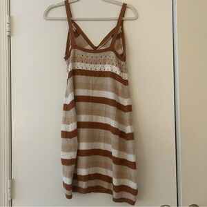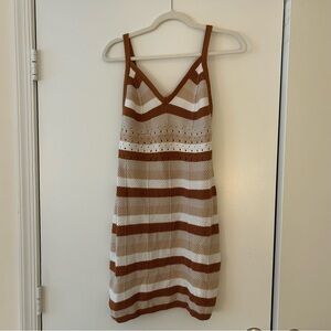 Ultra Flirt Brown and Cream Striped Crochet Mini Dress Beachwear Vacation Outfit