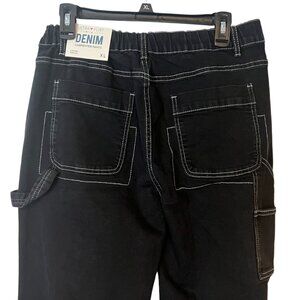 Ultra Flirt Carpenter Jeans Womens XL Black Contrasting Stitch Wide Leg Elastic Back NEW