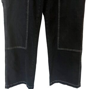 Ultra Flirt Carpenter Jeans Womens XL Black Contrasting Stitch Wide Leg Elastic
