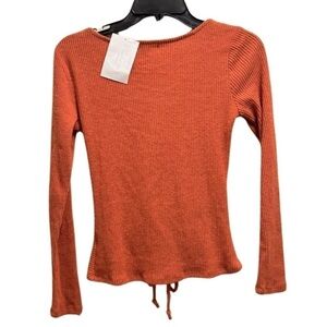 Ultra Flirt Long Sleeve Top Ribbed Orange Salmon pinkish color size S