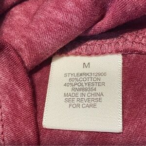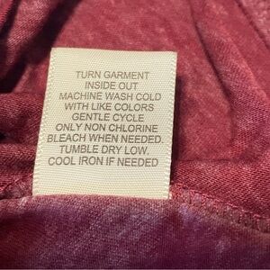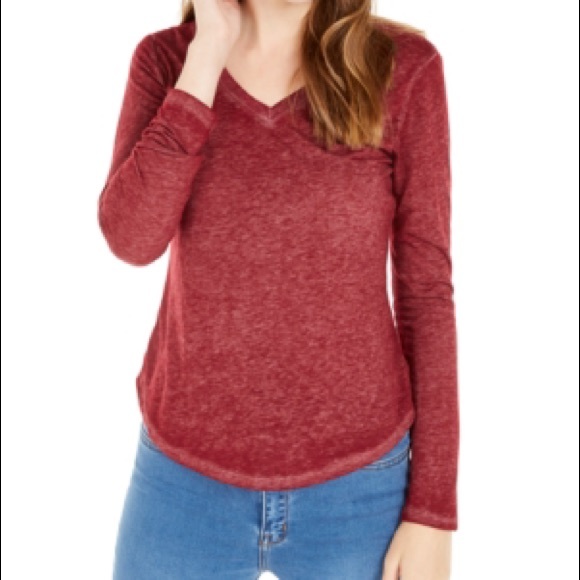 This Ultra Flirt long-sleeved textured boyfriend T-shirt in maroon is perfect for casual occasions. With a V-neckline and pullover closure, it features long sleeves and is made of a comfortable blend of polyester and cotton. The fabric type is cotton/polyester and the garment care is machine washable.