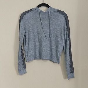 Scalloped eyelash lace trim brings a beautiful finish to Ultra Flirt By Ikeddi's marled pullover hoodie, fashioned with banded cuffs and a cropped length.