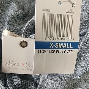 Ultra Flirt Marled Lace Trim Pullover Top in Celestial