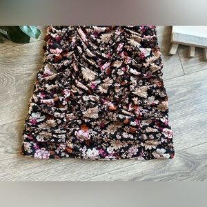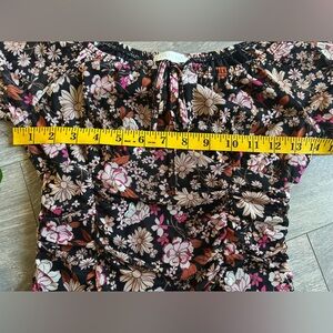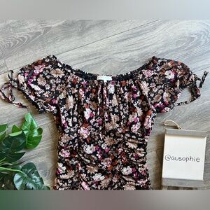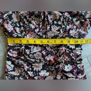 Ultra Flirt Mesh Keyhole Tie Front Ruched Floral Milkmaid Mini Dress. Size S