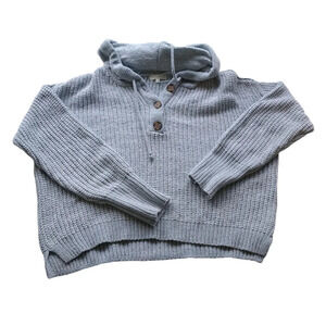 Ultra Flirt Mixed Chenille Crop Hooded Sweater with Buttons