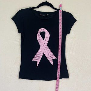 ITEM: Ultra Flirt Pink Ribbon Pink Studs Black Short Sleeve Top Women's Size Small