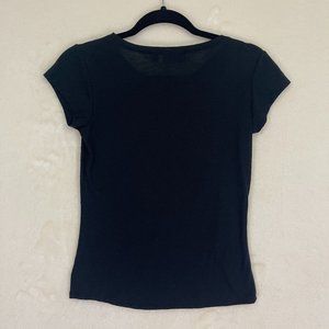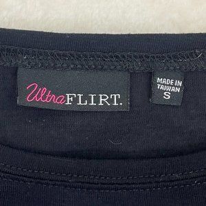 Ultra Flirt Pink Ribbon Pink Studs Black Short Sleeve Top Women's Size Small