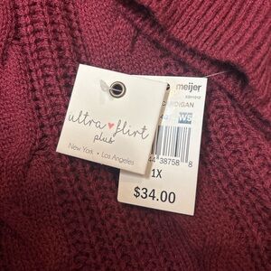 Ultra Flirt Plus Open Front Cable Knit Cardigan – Size 1X (NWT) BIN 1003