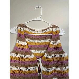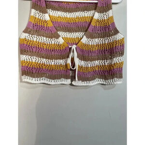 Ultra Flirt Purple Striped Open Knit Tie Front Cropped Vest