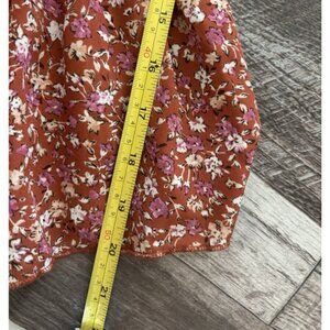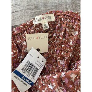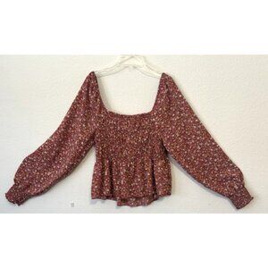 Ultra Flirt Smocked Peplum Top Brown Floral Square Neck Long Sleeve XL