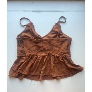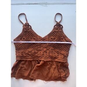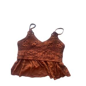 Ultra Flirt Tank Top Women's XL Orange Crochet Cotton Shell Boho Festival Summer