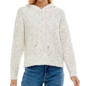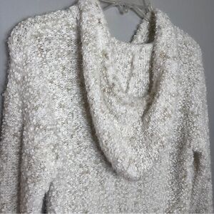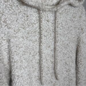 Cozy textured sweater with a hood and drawstring. Excellent pre-loved condition.