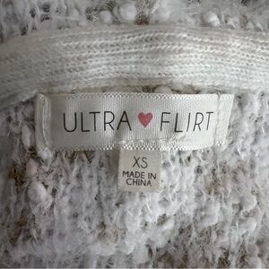 Ultra Flirt White & Tan Fuzzy Soft Textured Hooded Sweater Size XS EUC