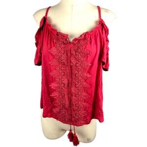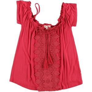 Ultra Flirt Womens Crotchet Knit Blouse Cayenne Size L Off Shoulder Embroidered