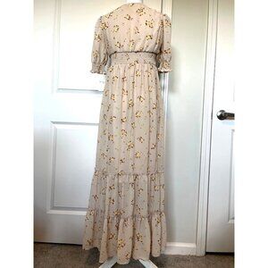 Ultra Flirt Womens Med Floral Maxi Dress Smocked Waist Button Detail Romantic