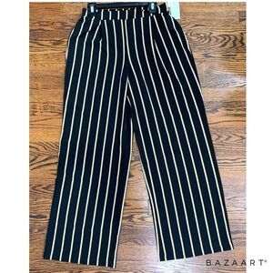 NWT Ultra Flirt Womens Shadow Striped Wide Leg Pant Black Sz: Large