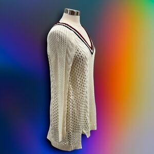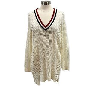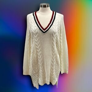 Ultra Flirt by Ikkedi Junior’s Pointelle Varsity Tunic Sweater in size Large