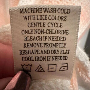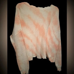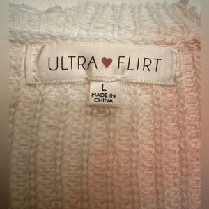 Ultra Flirt rough edge pink and white sweater. Long sleeved vneck. Size large
