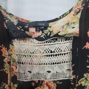 Floral motif, lace accents, cold off shoulder, boho, bohemian chic, festival, Coachella, witchy, cottage core