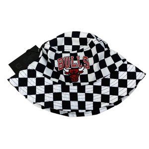 Ultra Game NBA Chicago Bulls Bucket Hat OSFA Black White Checkered Boonie NWT